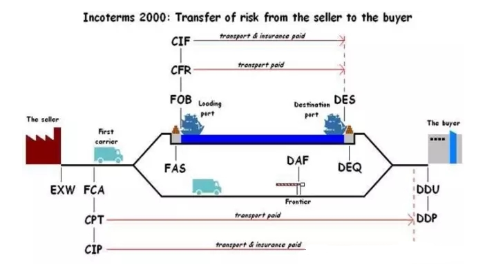 3、 关键点:风险点、交货点在启运港船上,费用划分点至目的港港口船上。